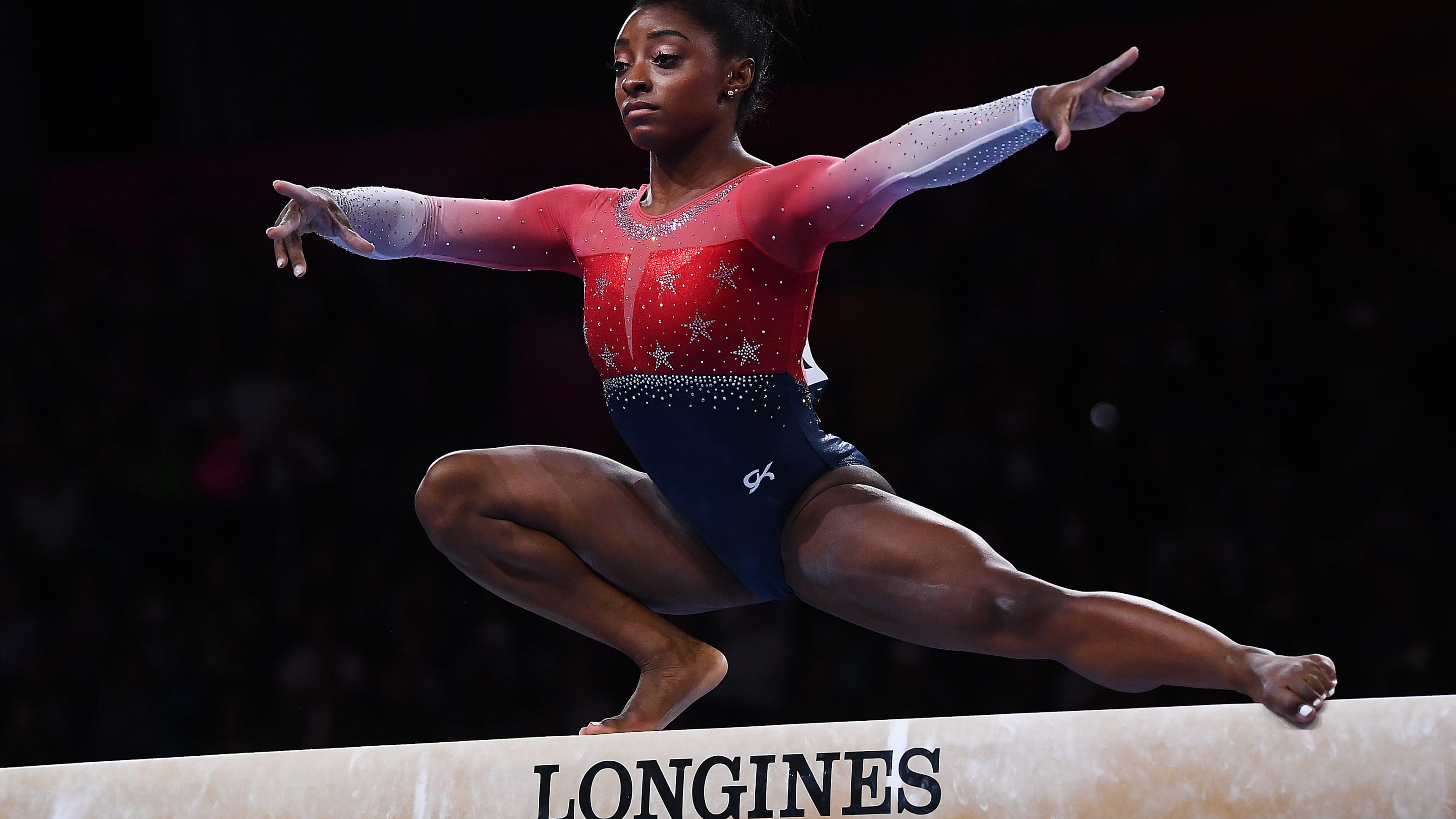 Simone Biles Of The U S In Action 2019 World Artistic Gymnastics Championships Women S Balance Beam Final Hanns Gymnastics Simone Biles Gymnastics World